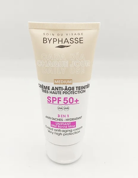 ویژگی ها ضد آفتاب ضد پیری رنگی بایفاس Byphasse مدل Medium حجم 50 میل