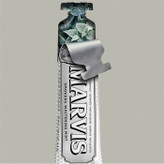 خمیر دندان سفید کننده مخصوص سیگاری ها مارویس یک خمیر دندان روزانه با مواد مینرال و بر پایه فلوراید بوده که به شدت با زردی،پوسیدگی و پلاک دندان ها مقابله می کند. این خمیر دندان دارای طعم قومارویس یک برند ایتالیایی است که به طور تخصصی در تولید محصولات بهداشتی دهان و دندان مشغول است. خمیر دندان های مارویس به دلیل ترکیبات مینرال و فرمولاسیون انحصاری، محبوبیت بسیار بالایی در اروپا و آمریکا دارند. خمیر دندان سفید کننده مخصوص سیگاری ها مارویس لکه های ناشی از سیگار،چای و قهوه را از دندان ها پاک کرده و آن ها را سفید و درخشان می کند. مواد پاک کننده انحصاری آن با سدیم مونوفلووروفسفات و دی اکسید تیتانیوم ترکیب شده تا با قاطعیت از پوسیدگی دندان ها جلوگیری کند. این خمیر دندان در عین پاک کنندگی بسیار بالا، بسیار لطیف و ملایم بوده و مینای دندان های حساس را تحریک نمی کند. رایحه نعناع تازه این خمیر دندان حس شادابی و تازگی را به دهان انتقال می دهد. همچنین باعث می شود با یک لبخند درخشان اعتماد به نفس خود را افزایش دهید.ی نعناع بوده که رایحه آن برای مدت طولانی در دهان مانده و از بوی بد دهان کاملا جلوگیری می کند.